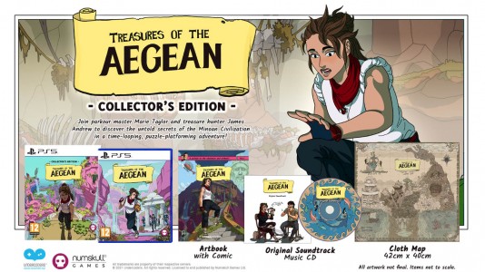 Prepare yourself for adventure with Treasures of the Aegean Collector’s Edition. Equipped with a precious cloth map for navigation, the original soundtrack for your very own themed music and a comic/artbook for a spot of light reading on your travels.